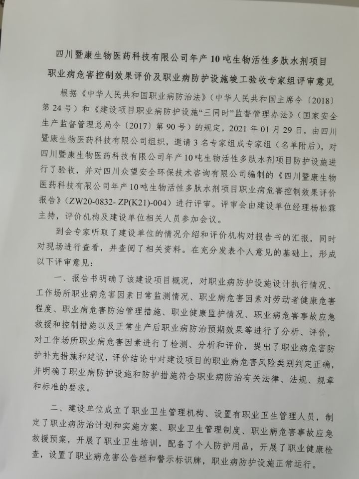 年10噸生物醫藥原料生產項目職業病危害預評價 |