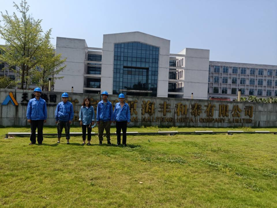 現場檢測人員:左1 解洪亮(A01(J)15101403),左2 彭國 (川職檢20210280) 左3業主 左4 李棟(A01(J)15101405)