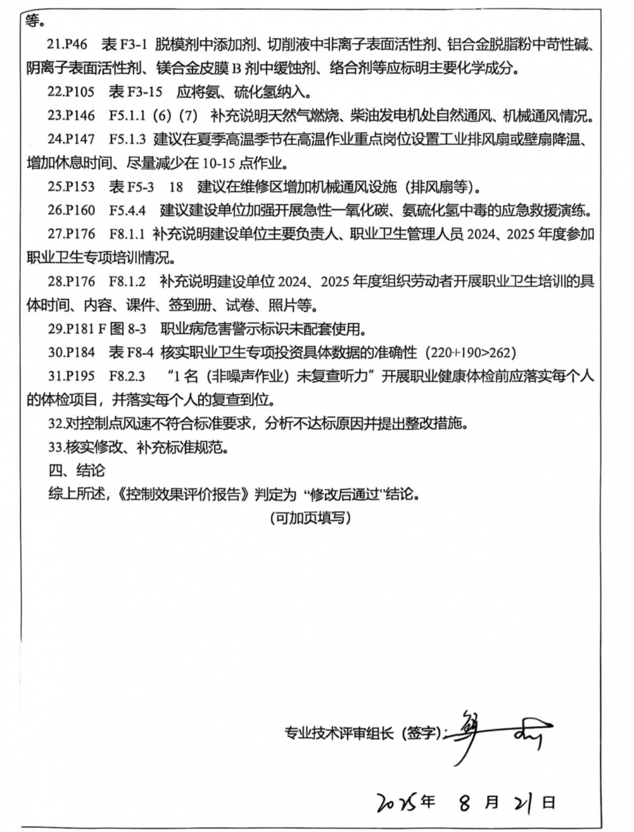 結(jié)論:項(xiàng)目控制效果評(píng)價(jià)判定為“職業(yè)病危害風(fēng)險(xiǎn)分類嚴(yán)重”的建設(shè)項(xiàng)目。 根據(jù)對(duì)本項(xiàng)目現(xiàn)場(chǎng)調(diào)查、職業(yè)病危害因素檢測(cè)結(jié)果和項(xiàng)目相關(guān)資料的綜合分析,本項(xiàng)目職業(yè)衛(wèi)生防治工作基本符合國(guó)家法律、法規(guī)的相關(guān)規(guī)定,采取的職業(yè)病防治措施基本可行,日常運(yùn)行過(guò)程中在一定程度上能控制和降低職業(yè)病危害因素對(duì)作業(yè)人員健康的影響,項(xiàng)目在落實(shí)了本次評(píng)價(jià)報(bào)告提出的補(bǔ)充措施和建議后,能夠滿足職業(yè)病防治工作的需要。本項(xiàng)目已具備職業(yè)病防護(hù)設(shè)施竣工驗(yàn)收的條件。 建議: