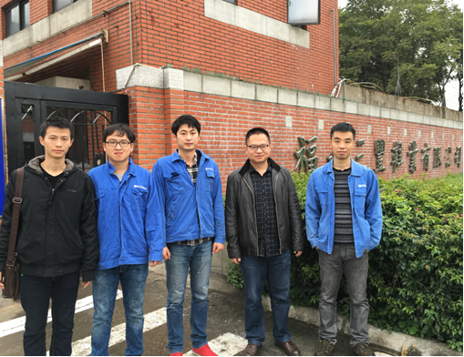 圖2 檢測人員現(xiàn)場檢測照片 (檢測持證人員:郭俊良(右一) 證書號:A01(J)15101563 李 林(左三) 證書號:A01(J)15101408) |
