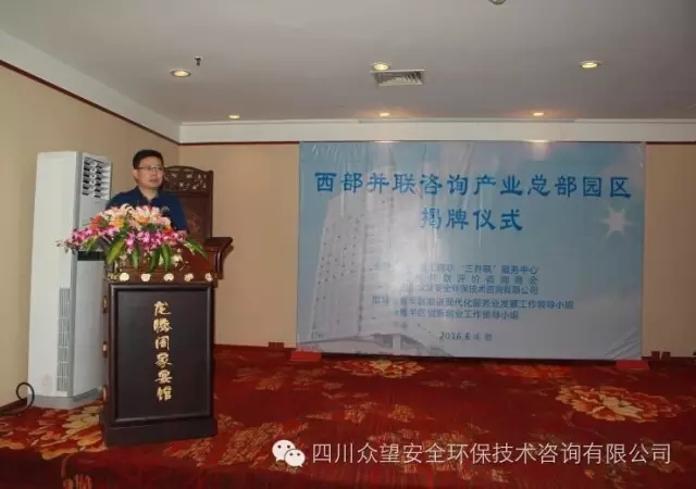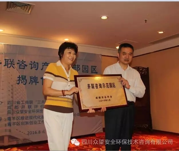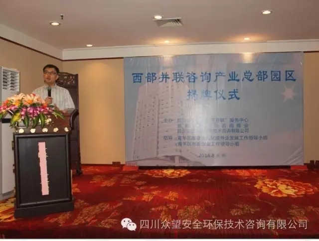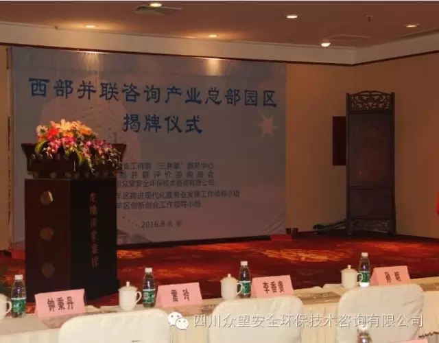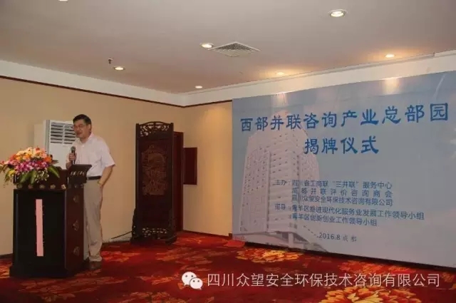2016年8月26日上午,由四川眾望安全環(huán)保技術(shù)咨詢有限公司牽頭打造的“西部并聯(lián)咨詢產(chǎn)業(yè)總部園區(qū)”揭牌儀式在成都隆重舉行,省、市工商聯(lián)和青羊區(qū)政府及多家單位領(lǐng)導(dǎo)共150余人到場祝賀,共同見證全國首個并聯(lián)咨詢園區(qū)的誕生。