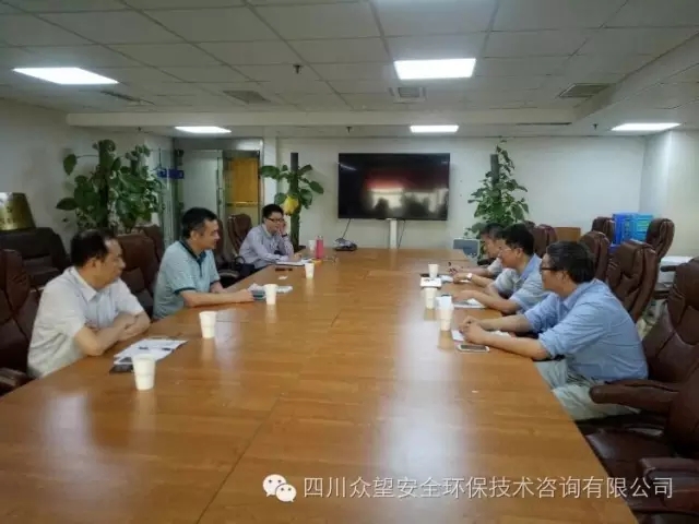 2016年9月7日,四川省輕工業設計院院長黃明剛,副院長陳勇,總工程師陳小平一行三人到四川省眾望安全環保技術咨詢有限公司參觀考察,隨后與四川眾望公司總經理潘祖高,副總經理朱子剛、張宏、李圣興等親切交談,共商深度合作事宜。